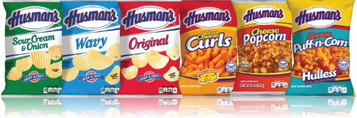 When the chips are down be sure they’re Husman’s®! The company that began out of Harry Husman’s home now produces a variety of chips, cheese curls, popcorn and other great tasting, quality snack products.